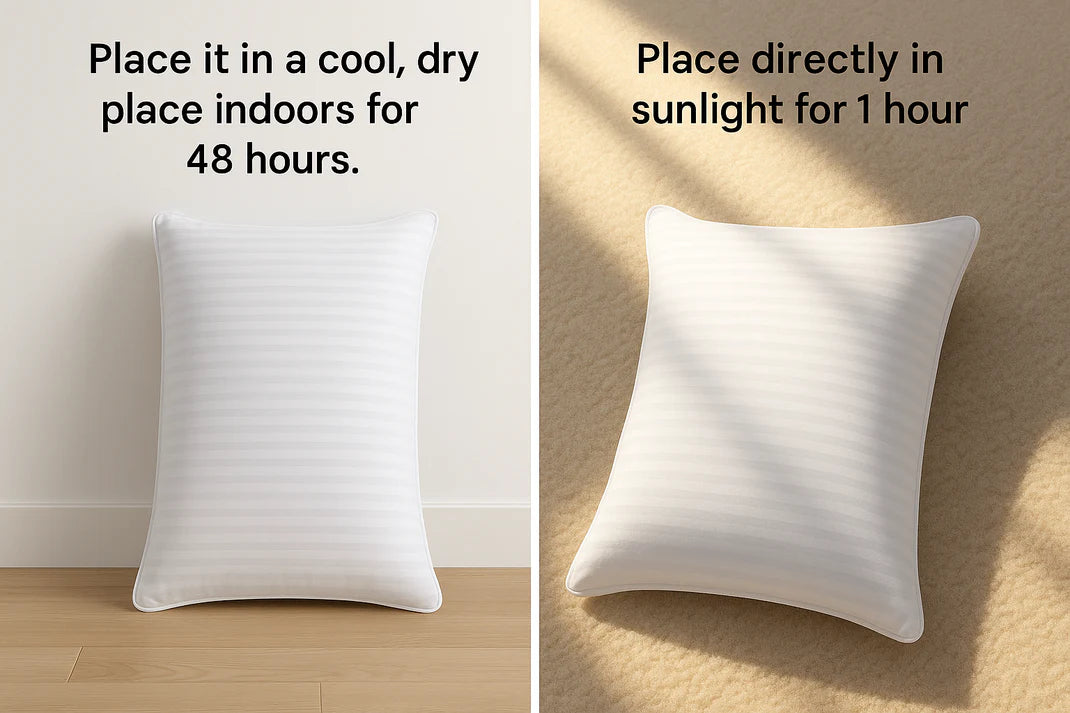 Open it to let air come in - Gently pat, turn, and shake the pillow several times